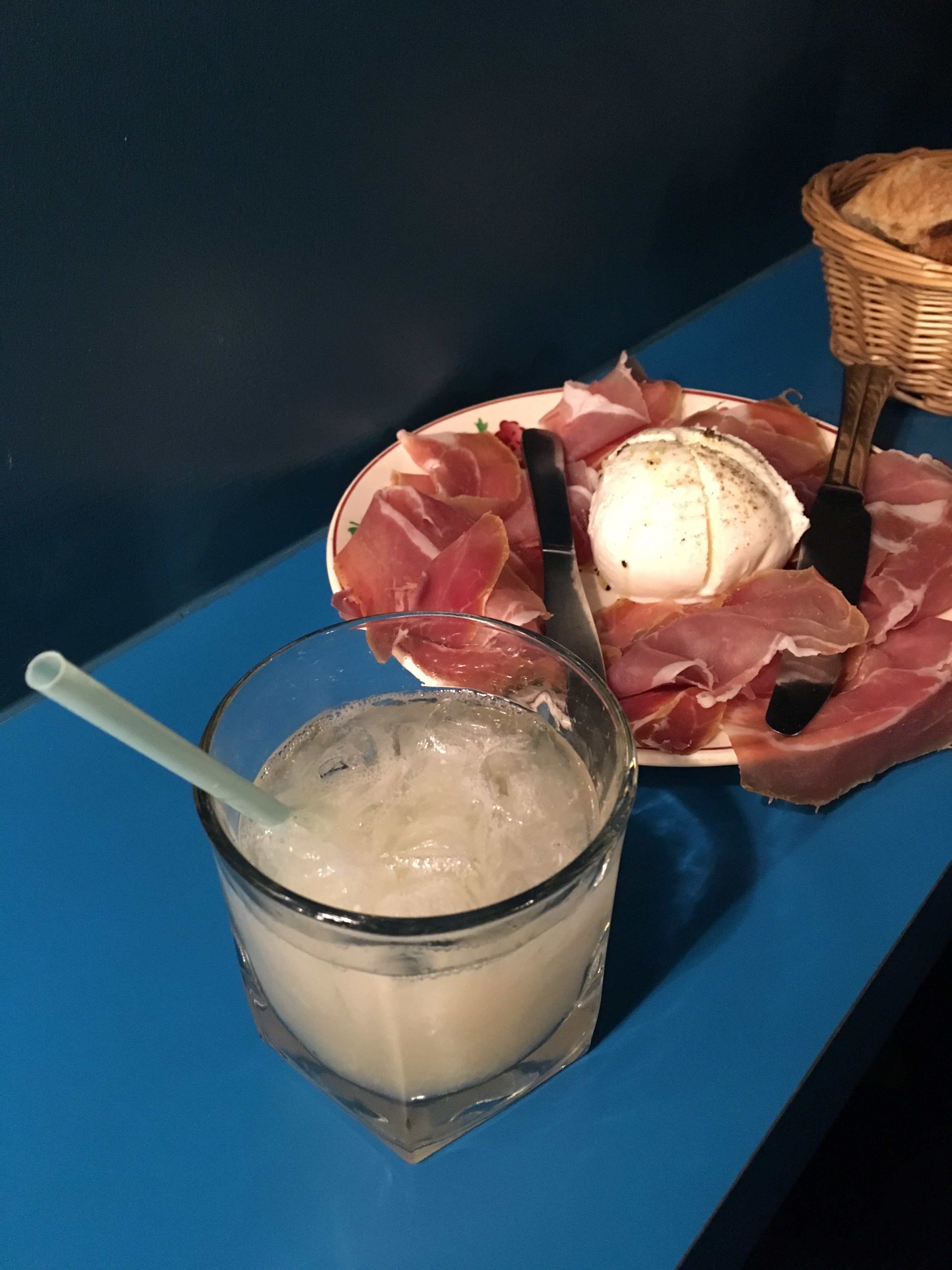 Evidemment nous avons directement voulu tester les cocktails (9,50€) ! Ça sera l’étrange « Nutella Sour » pour Soso et le classique « Moscow Mule » pour Tiff. Quelques snacks sont également dispo en cas de petite faim : Hot Dog, Planche mixte (12€) ou Tourtes ! Plutôt original pour un bar. Nous avons finalement opté pour la planche parce que… la mozza c’est la vie !